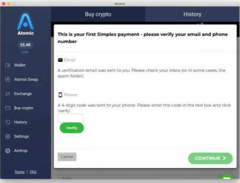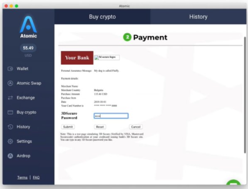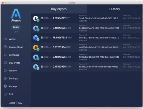 1. After purchasing, Click “Return to Atomic Wallet” and select “History” to check your transaction.